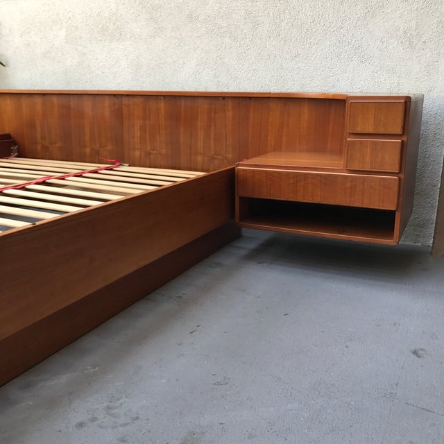 Danish Modern Teak Double Bed, 1960s at 1stdibs from a.1stdibscdn.com All danish bed frame are made from exceptional materials that give them unparalleled strength and durability. The best modern bed frames to dress up your bedroom. The isabella gas lift queen size bed frame is a modern yet classic bed base, featuring a panelled bed head with wings for a touch of elegance. Danish modern teak floating bed frame. Maker's label on back jesper. As with most mid century modern bed frames, the ones we carry all collapse down to be easily moved or tra. Midcentury danish modern king walnut platform pablex bed floating nightstands. Queen bedframe, king bedframe, walnut bed, oak bed, danish modern bed, headboard, bedroom furniture.